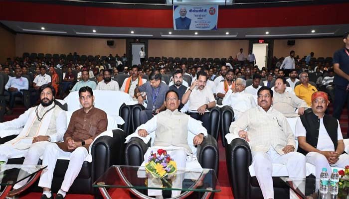 रायपुर : प्रधानमंत्री नरेन्द्र मोदी के लोकप्रिय मासिक रेडियो कार्यक्रम ‘मन की बात’ की 125वीं कड़ी का सीधा प्रसारण आज नवा रायपुर स्थित डॉ. श्यामा प्रसाद उद्योग एवं व्यापार परिसर के कन्वेंशन सेंटर में हुआ। कार्यक्रम में मुख्यमंत्री विष्णु देव साय, खाद्य मंत्री दयालदास बघेल, उद्योग मंत्री लखन देवांगन, राजस्व मंत्री टंक राम वर्मा, कौशल विकास एवं रोजगार मंत्री गुरु खुशवंत साहेब, विधायक इंद्र कुमार साहू तथा छत्तीसगढ़ राज्य औद्योगिक विकास निगम के अध्यक्ष श्री राजीव अग्रवाल सहित बड़ी संख्या में जनप्रतिनिधिगण और नागरिक उपस्थित थे।