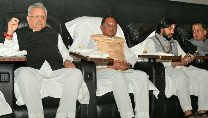 रायपुर : मुख्यमंत्री विष्णु देव साय राजधानी रायपुर स्थित अंबुजा मॉल के सिनेमाघर में छत्तीसगढ़ी फिल्म “बलिदानी राजा गुरु बालकदास” को देखने पहुँचे।