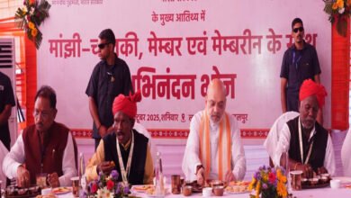 केन्द्रीय गृहमंत्री अमित शाह मांझी-चालकी के साथ अभिनन्दन भोज में हुए शामिल