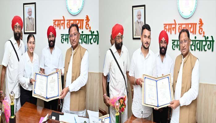 मुख्यमंत्री विष्णु देव साय से राष्ट्रपति सम्मान से सम्मानित देवाशीष और मनतृप्त कौर ने की सौजन्य मुलाकात