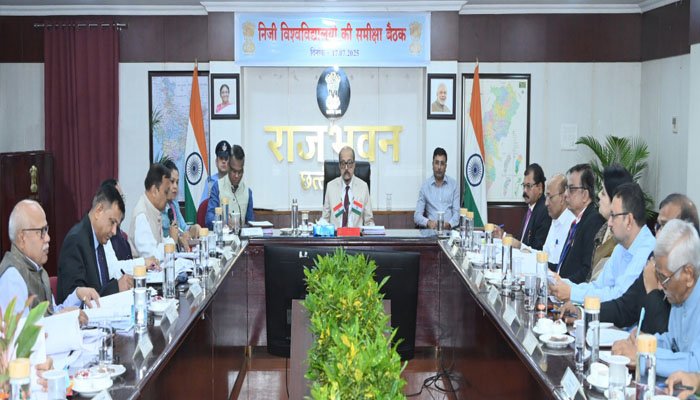 राज्यपाल एवं निजी विश्वविद्यालयों के कुलाध्यक्ष रमेन डेका ने आज छत्तीसगढ़ के सभी निजी विश्वविद्यालयों के कुलपतियों की समीक्षा बैठक ली। उन्होंने स्पष्ट निर्देश दिए कि विश्वविद्यालय केवल डिग्रियां बांटने का केंद्र न बनें, बल्कि गुणवत्तापूर्ण शिक्षा के लिए प्रतिबद्ध हों। उन्होंने कहा कि यदि विश्वविद्यालय गुणवत्ता के मापदंडों पर खरे नहीं उतरते, तो उन्हें बंद करने की कार्यवाही की जाएगी।