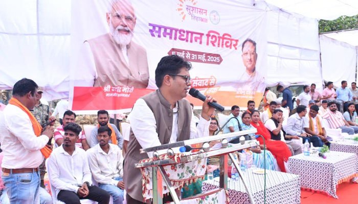 समाधान शिविर को संबोधित करते हुए वित्तमंत्री ओपी चौधरी ने कहा कि सरकार बनने के बाद से ही तेंदूपत्ता की ख़रीद दर बढ़ाकर 5500 रुपये प्रति मानक बोरा की गई है। वहीं प्रधानमंत्री आवास योजना के तहत ग्रामीणों को 1 लाख 20 हजार रुपये की राशि घर निर्माण हेतु दी जा रही है।